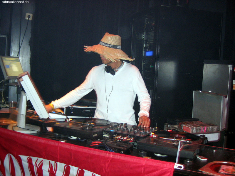 Is des der Typ, der auch in der Bacardi-Werbung den DJ gemacht hat? Also so hät ich ihn mir vorgestellt! Bis auf den falschen Werbeschriftzug auf seinem Hut natürlich!