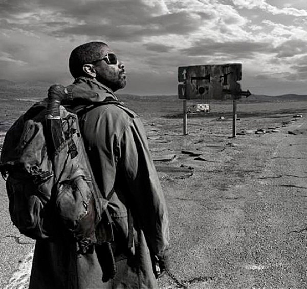 In dieser postapokalyptischen Szenerie wandert ein unbekannter Mann (Denzel Washington) umher. Er ist mit Waffen und einigen Gegenständen ausgerüstet, die sich gegen Wasser tauschen lassen. Außerdem trägt er ein mysteriöses Buch bei sich, das er in den Westen bringen will. Dass es sich bei diesem Buch um die Bibel handelt, erkennt der Zuschauer spätestens, wenn Denzel Washington ständig Verse aus eben dieser zitiert. Auch der Name des Unbekannten bleibt lange im Verborgenenen. Erst spät im Film fällt der Name Eli, der übrigens auch in der Bibel verankert ist. Im ersten Buch Samuel kann man von Eli lesen, einem Hohepriester der Israeliten. Der Name bedeutet wahrscheinlich so viel wie der Hinaufsteigende oder der Emporkommende.
