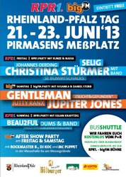 Vom 21. bis 23. Juni herrscht in Pirmasens Partyalarm, denn es findet der 30. Rheinland-Pfalz-Tag statt! An drei Tagen wird ein abwechslungsreiches Unterhaltungsprogramm auf zahlreichen Bühnen und Aktions- und Präsentationsflächen geboten. Die Programmhighlights auf den großen Show- und Open-Air-Bühnen des Rheinland-Pfalz-Tages sind auch bekannt. So beiten u.a. RPR1. und bigFM gemeinsam ein Musik- und Show-Openair mit Top-Besetzung.