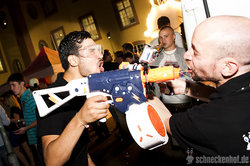 Da wir nicht nur kleckern, sondern klotzen, unterstützen wir euch tatkräftig beim Promille sammeln. Hinter dem Brunnen bieten wir beispielsweise drei kurzweilige Spiele an, die garantiert für Spaß, Action und Shots sorgen. Zu dem ist unser Team den Abend über mit diversen Super-Soakern on Tour, um euch überall auf dem Hof mobil zu versorgen. Natürlich gibt es an der Bar auch wieder unser berüchtigtes Gehirnzellenmassaker und und und...
